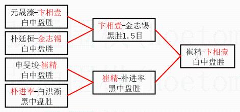 | 3.下半区半决赛崔精获胜,比分:崔精1:0朴进率。棋局: | ||