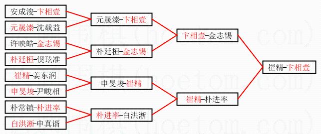 | 1.卞相壹获得冠军,崔精获得亚军。决赛比分:卞相壹3:0崔精。棋局: | ||