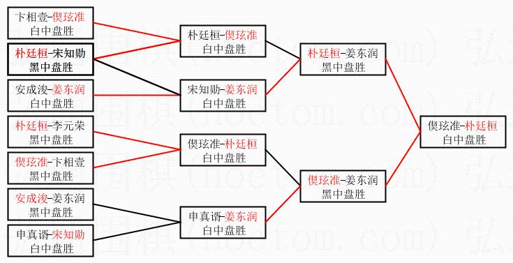 | 1.朴廷桓获得冠军,偰玹准获得亚军。决赛比分:朴廷桓3:2偰玹准。棋局: | ||