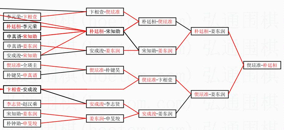 | 1.朴廷桓获得冠军,偰玹准获得亚军。决赛比分:朴廷桓3:2偰玹准。棋局: | ||