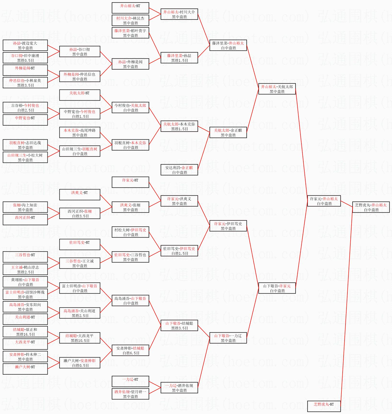 2.上半区半决赛井山裕太获胜, 比分:井山裕太 1:0 许家元。棋局: