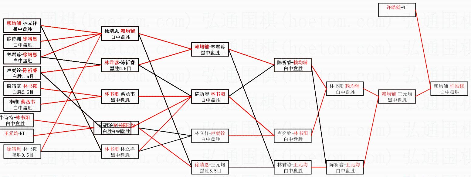 1.许皓鋐获得冠军,赖均辅获得亚军。决赛比分:许皓鋐4:1赖均辅。棋局: