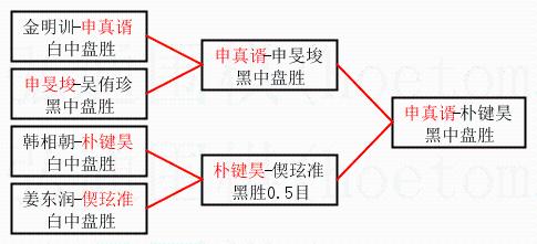 2.上半区半决赛申真谞获胜, 比分:申真谞 1:0 申旻埈。棋局: