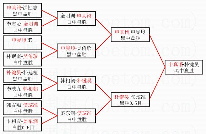 1.申真谞获得冠军,朴键昊获得亚军。决赛比分:申真谞2:0朴键昊。棋局: