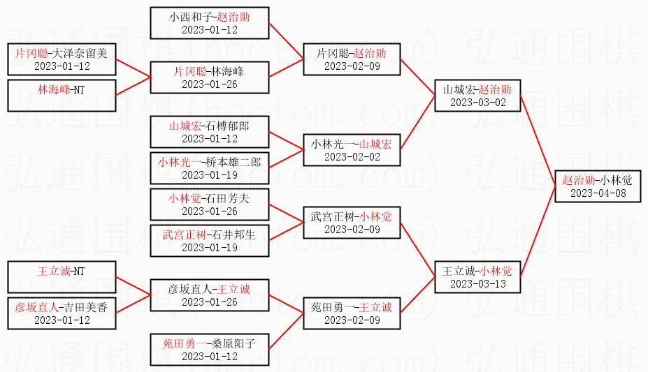 1.赵治勋获得冠军,小林觉获得亚军。决赛比分:赵治勋1:0小林觉。棋局: