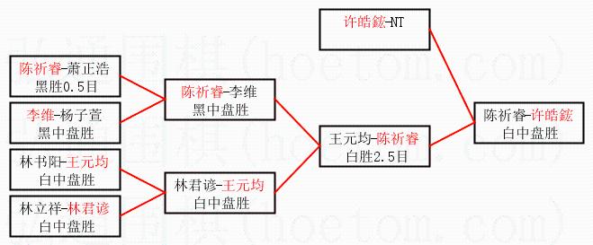 1.许皓鋐获得冠军,陈祈睿获得亚军。决赛比分:许皓鋐3:0陈祈睿。棋局: