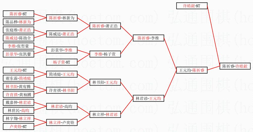 1.许皓鋐获得冠军,陈祈睿获得亚军。决赛比分:许皓鋐3:0陈祈睿。棋局: