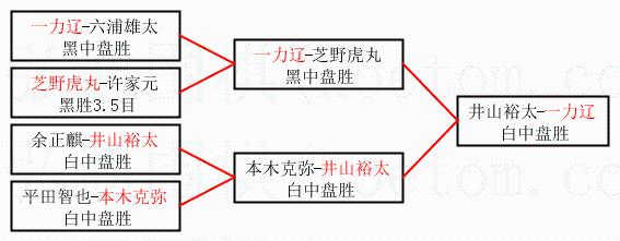 2.上半区半决赛一力辽获胜, 比分:一力辽 1:0 芝野虎丸。棋局: