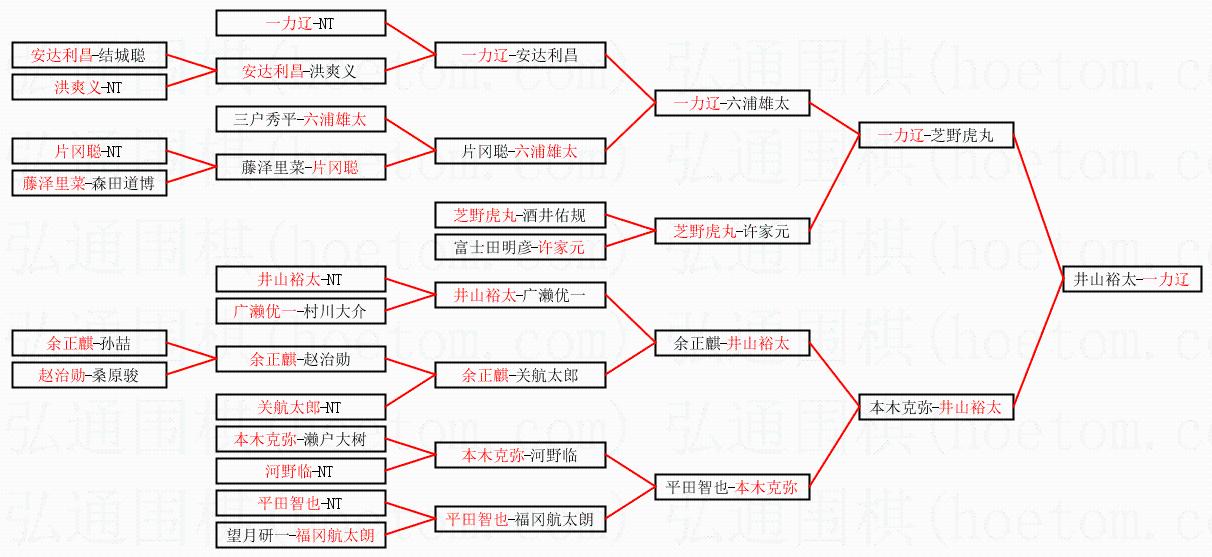 1.一力辽获得冠军,井山裕太获得亚军。决赛比分:一力辽1:0井山裕太。棋局: