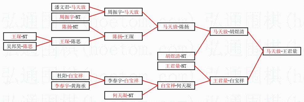 | 1.马天放获得冠军,王君量获得亚军。决赛比分:马天放2:1王君量。棋局: | ||