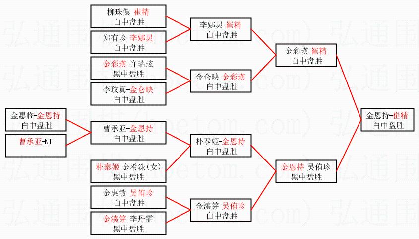 2.上半区半决赛崔精获胜, 比分:崔精 1:0 金彩瑛。棋局: