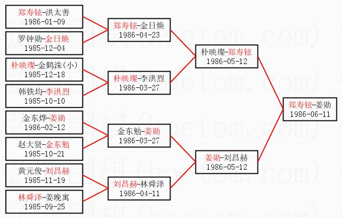 2.上半区半决赛郑寿铉获胜, 比分:郑寿铉 1:0 朴映璨。棋局: