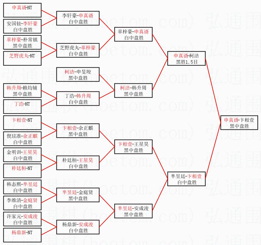 | 1.申真谞获得冠军,卞相壹获得亚军。决赛比分:申真谞2:0卞相壹。棋局: | ||