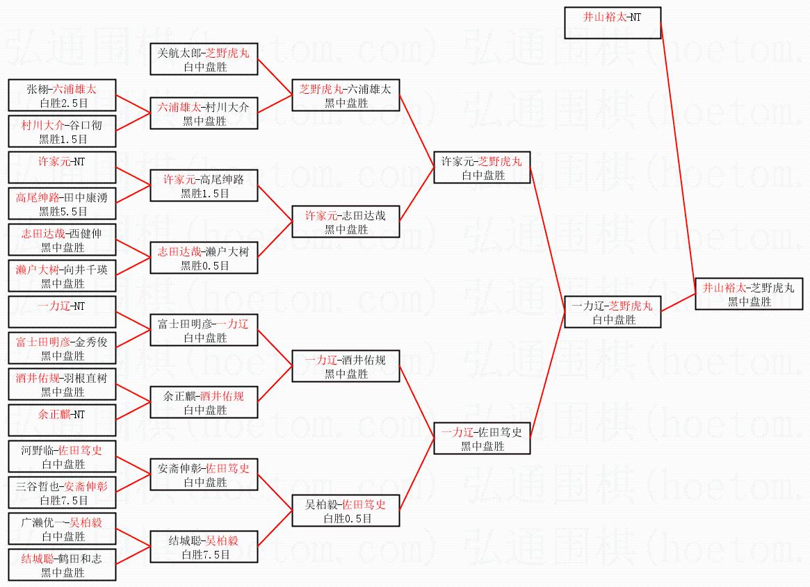1.井山裕太获得冠军,芝野虎丸获得亚军。决赛比分:井山裕太3:1芝野虎丸。棋局: