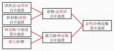 1.金明训获得冠军,韩友赈获得亚军。决赛比分:金明训1:0韩友赈。棋局: