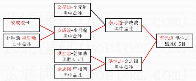 2.上半区半决赛李元道获胜, 比分:李元道 1:0 安成浚。棋局: