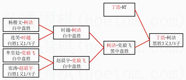 3.下半区半决赛柯洁获胜,比分:柯洁1:0党毅飞。棋局: