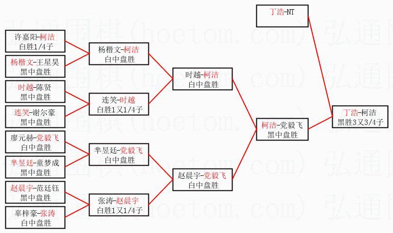 3.下半区半决赛柯洁获胜,比分:柯洁1:0党毅飞。棋局: