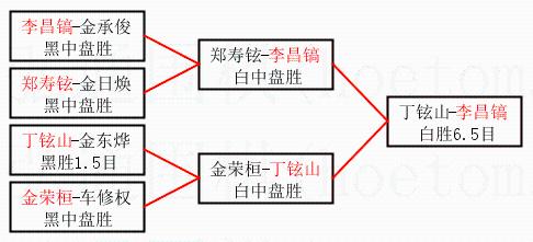 1.李昌镐获得冠军,丁铉山获得亚军。决赛比分:李昌镐2:0丁铉山。棋局: