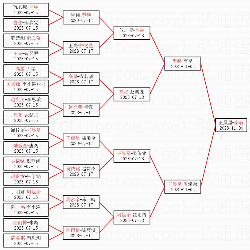 1.李赫获得冠军,王晨星获得亚军。决赛比分:李赫2:0王晨星。棋局: