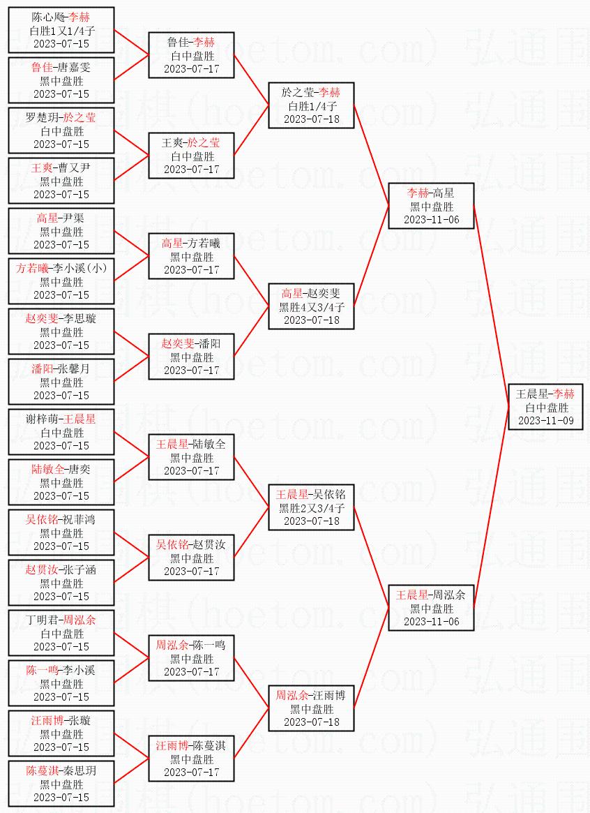 1.李赫获得冠军,王晨星获得亚军。决赛比分:李赫2:0王晨星。棋局: