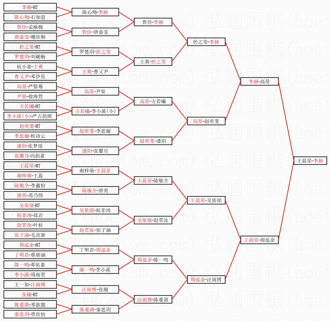 1.李赫获得冠军,王晨星获得亚军。决赛比分:李赫2:0王晨星。棋局: