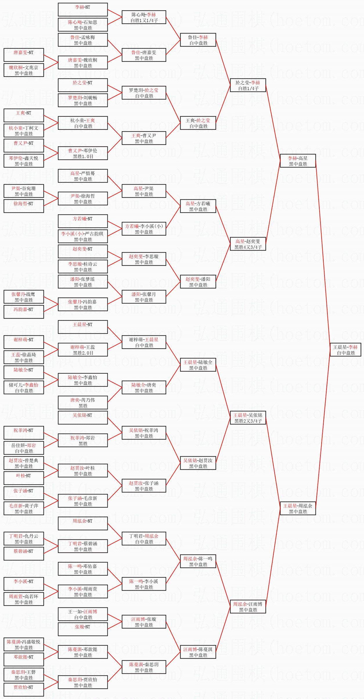 1.李赫获得冠军,王晨星获得亚军。决赛比分:李赫2:0王晨星。棋局: