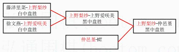 2.上半区半决赛上野梨纱获胜, 比分:上野梨纱 1:0 上野爱咲美。棋局: