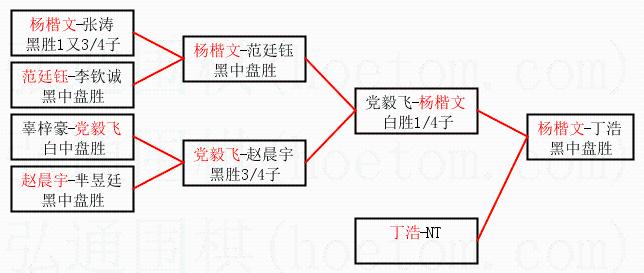 2.上半区半决赛杨楷文获胜, 比分:杨楷文 1:0 党毅飞。棋局: