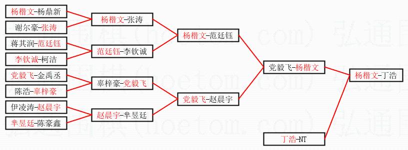 2.上半区半决赛杨楷文获胜, 比分:杨楷文 1:0 党毅飞。棋局:
