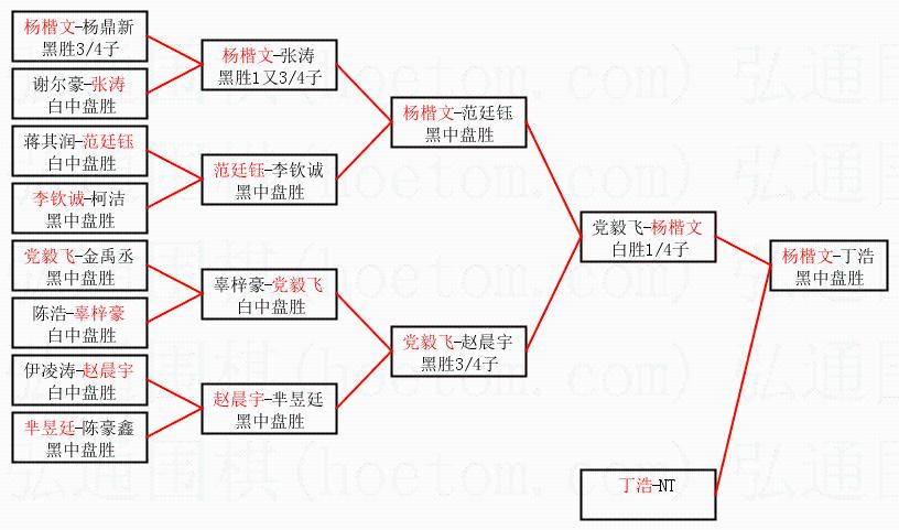 1.杨楷文获得冠军,丁浩获得亚军。决赛比分:杨楷文1:0丁浩。棋局: