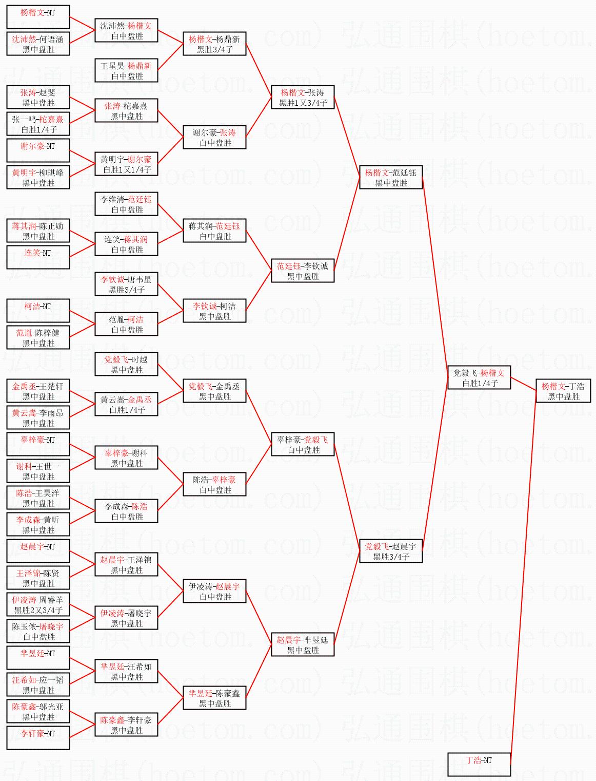 1.杨楷文获得冠军,丁浩获得亚军。决赛比分:杨楷文1:0丁浩。棋局: