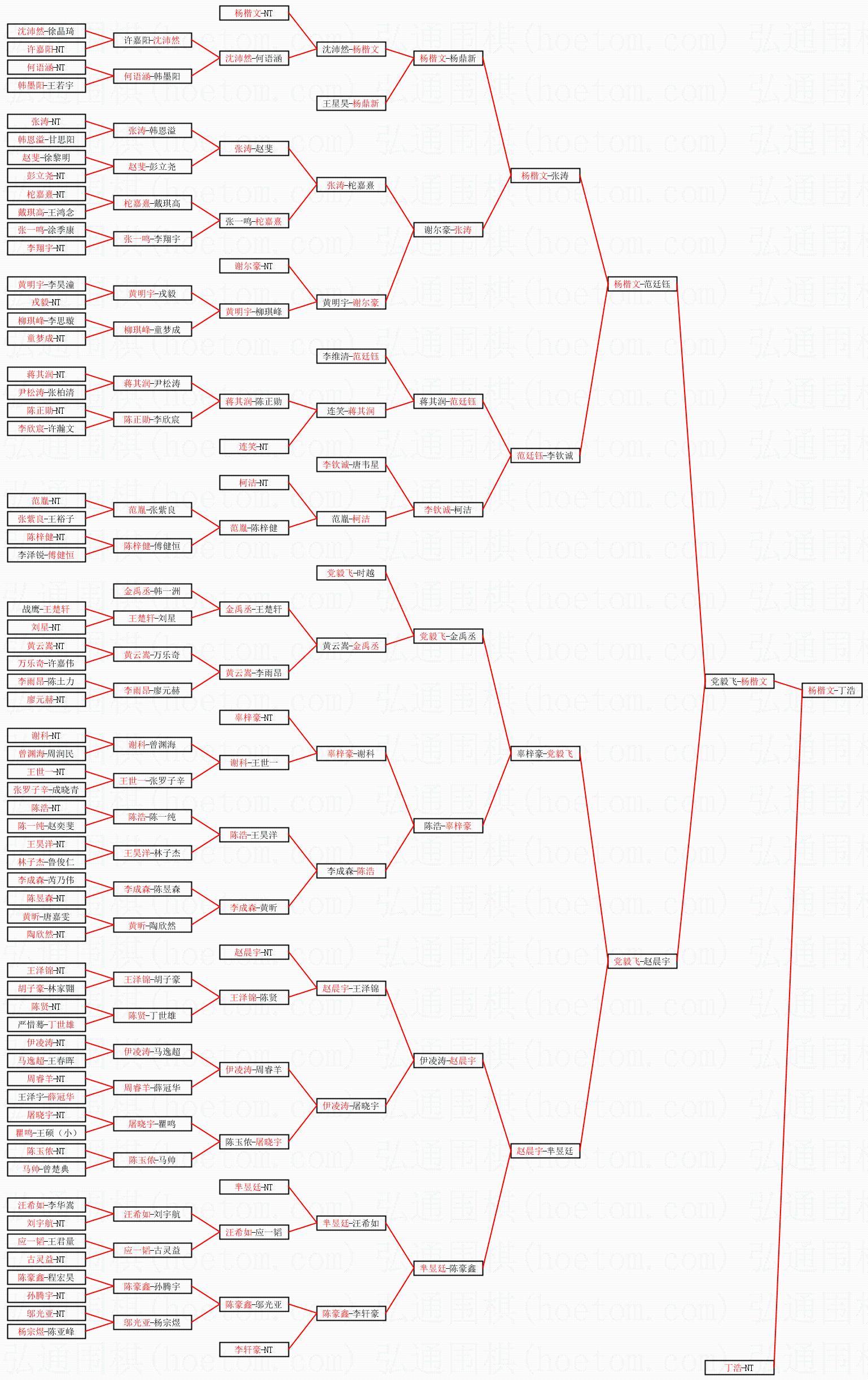 1.杨楷文获得冠军,丁浩获得亚军。决赛比分:杨楷文1:0丁浩。棋局:
