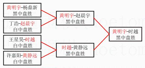 1.黄明宇获得冠军,时越获得亚军。决赛比分:黄明宇1:0时越。棋局: