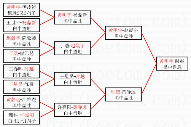 1.黄明宇获得冠军,时越获得亚军。决赛比分:黄明宇1:0时越。棋局: