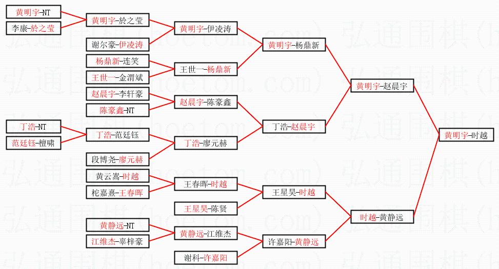 1.黄明宇获得冠军,时越获得亚军。决赛比分:黄明宇1:0时越。棋局: