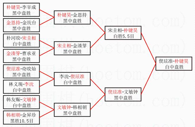 2.上半区半决赛朴键昊获胜, 比分:朴键昊 1:0 宋圭相。棋局:
