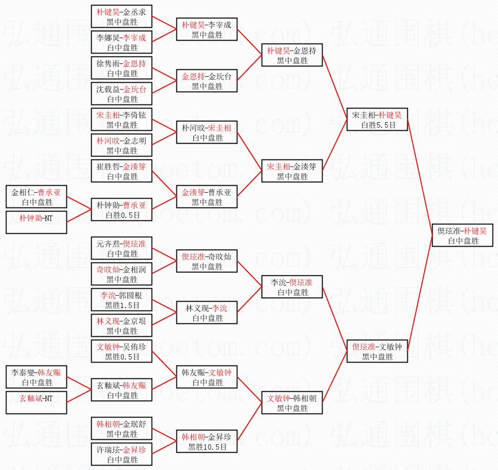 | 1.朴键昊获得冠军,偰玹准获得亚军。决赛比分:朴键昊2:1偰玹准。棋局: | ||