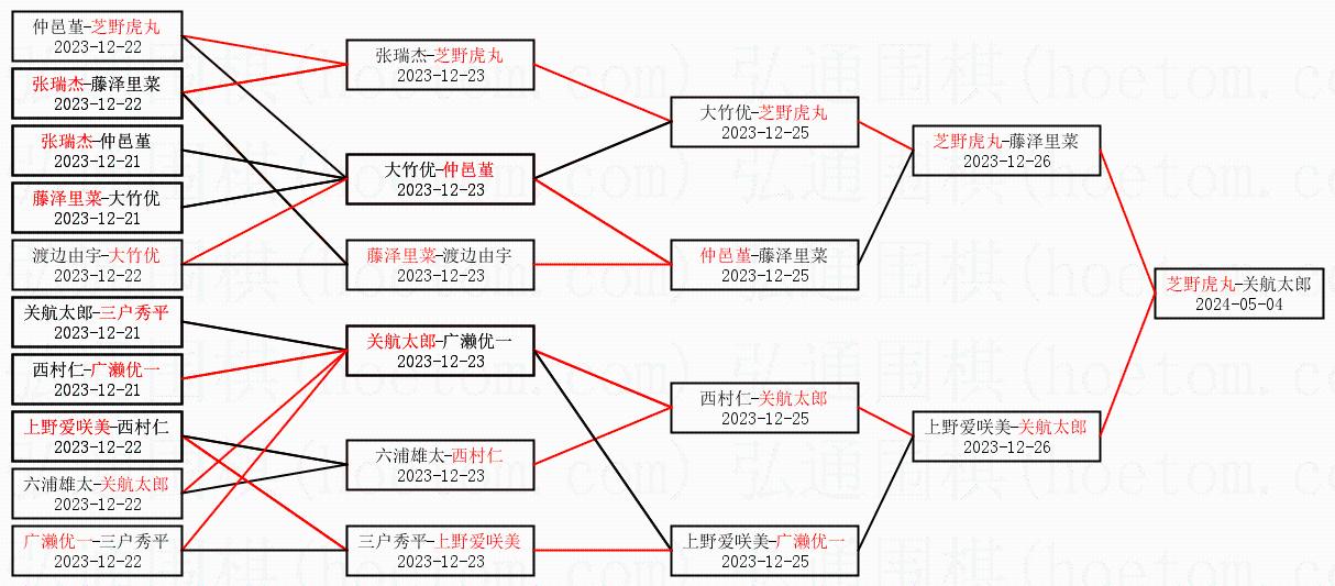 1.芝野虎丸获得冠军,关航太郎获得亚军。决赛比分:芝野虎丸2:0关航太郎。棋局: