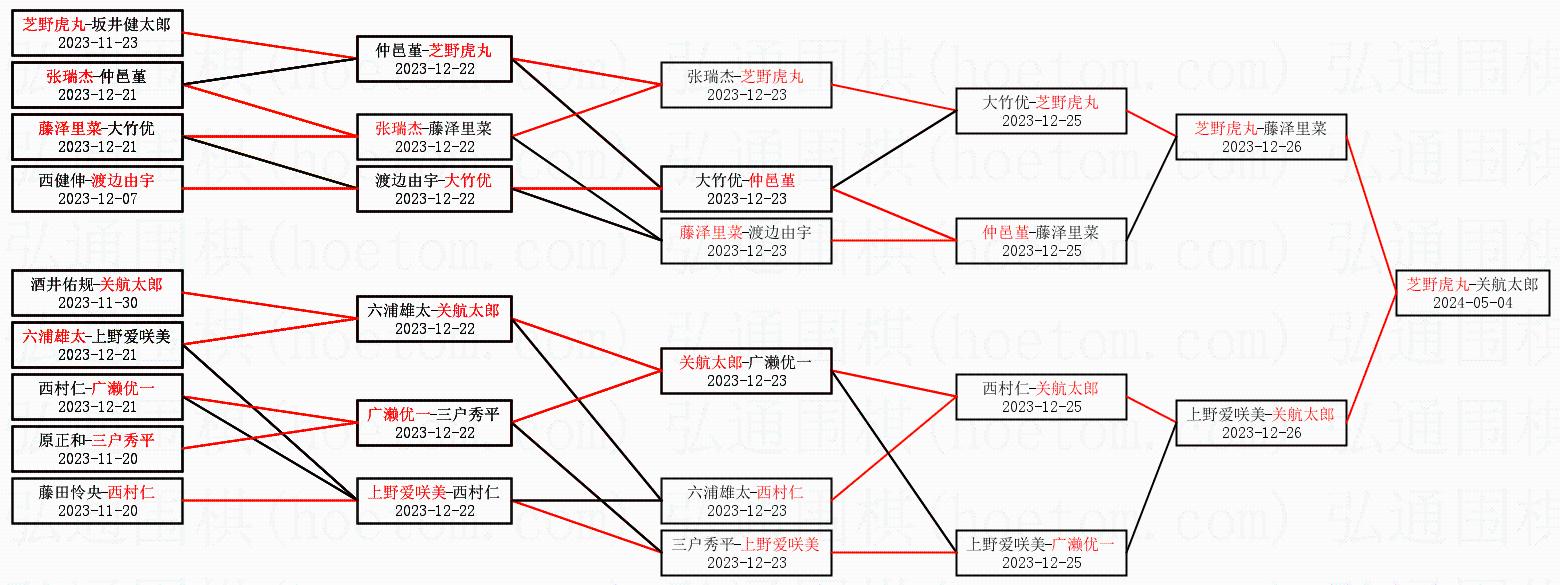 1.芝野虎丸获得冠军,关航太郎获得亚军。决赛比分:芝野虎丸2:0关航太郎。棋局: