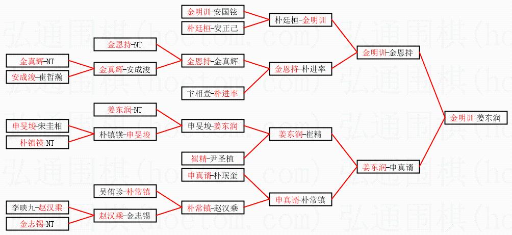 | 1.金明训获得冠军,姜东润获得亚军。决赛比分:金明训2:1姜东润。棋局: | ||