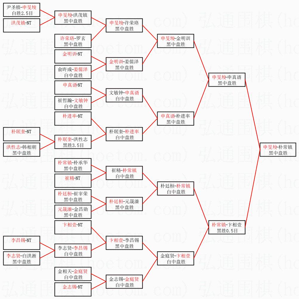 | 1.申旻埈获得冠军,朴常镇获得亚军。决赛比分:申旻埈3:0朴常镇。棋局: | ||