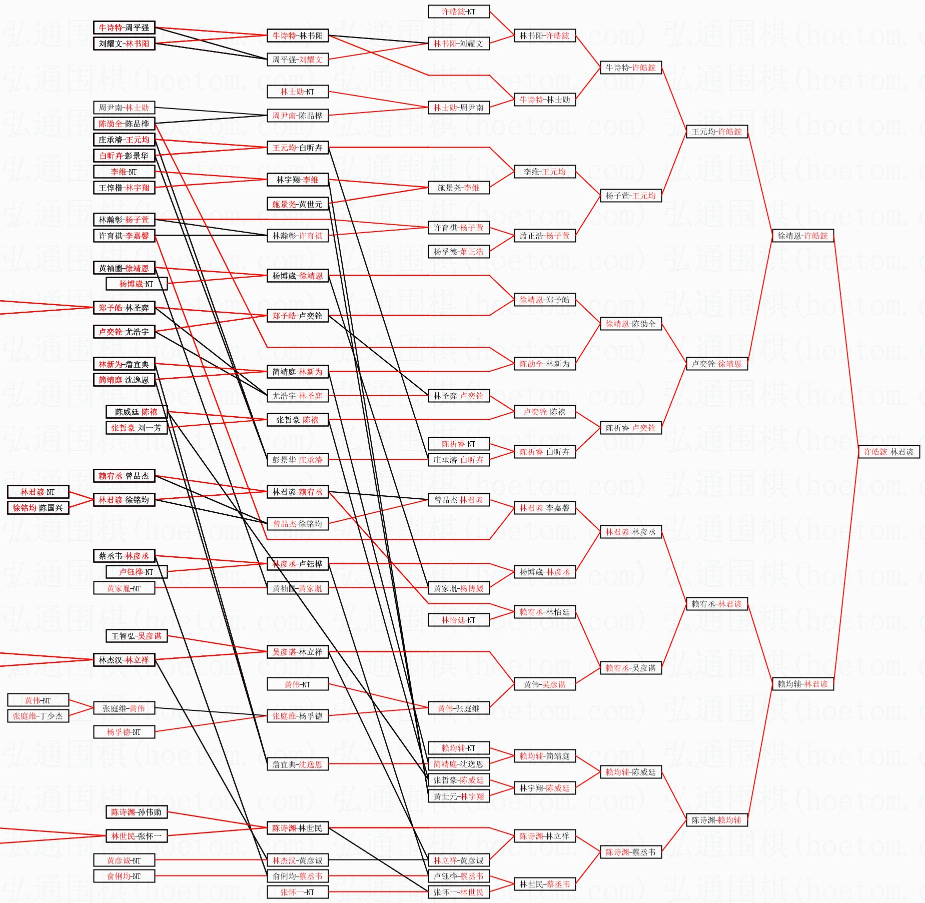 | 1.许皓鋐获得冠军,林君谚获得亚军。决赛比分:许皓鋐4:1林君谚。棋局: | ||