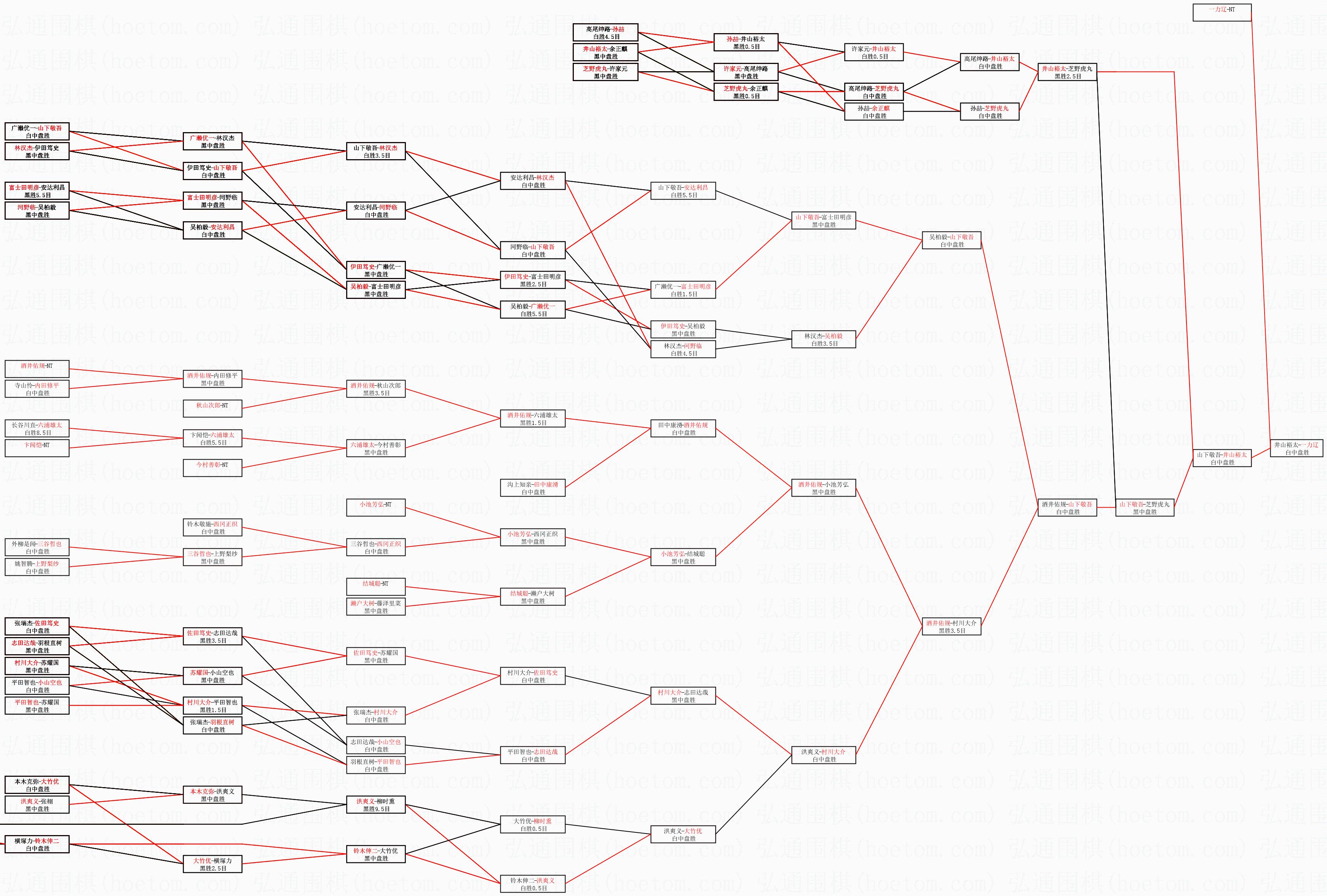 | 1.一力辽获得冠军,井山裕太获得亚军。决赛比分:一力辽4:3井山裕太。棋局: | ||