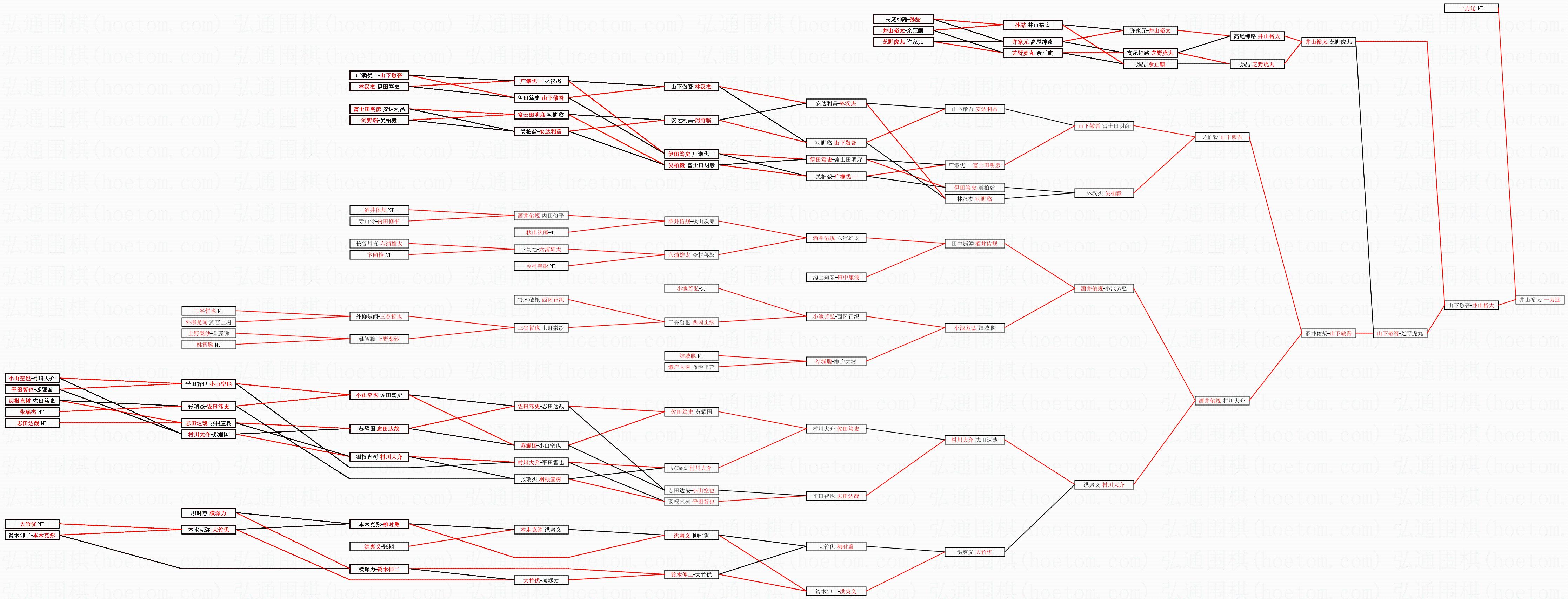 | 1.一力辽获得冠军,井山裕太获得亚军。决赛比分:一力辽4:3井山裕太。棋局: | ||