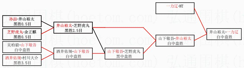 | 1.一力辽获得冠军,井山裕太获得亚军。决赛比分:一力辽4:3井山裕太。棋局: | ||