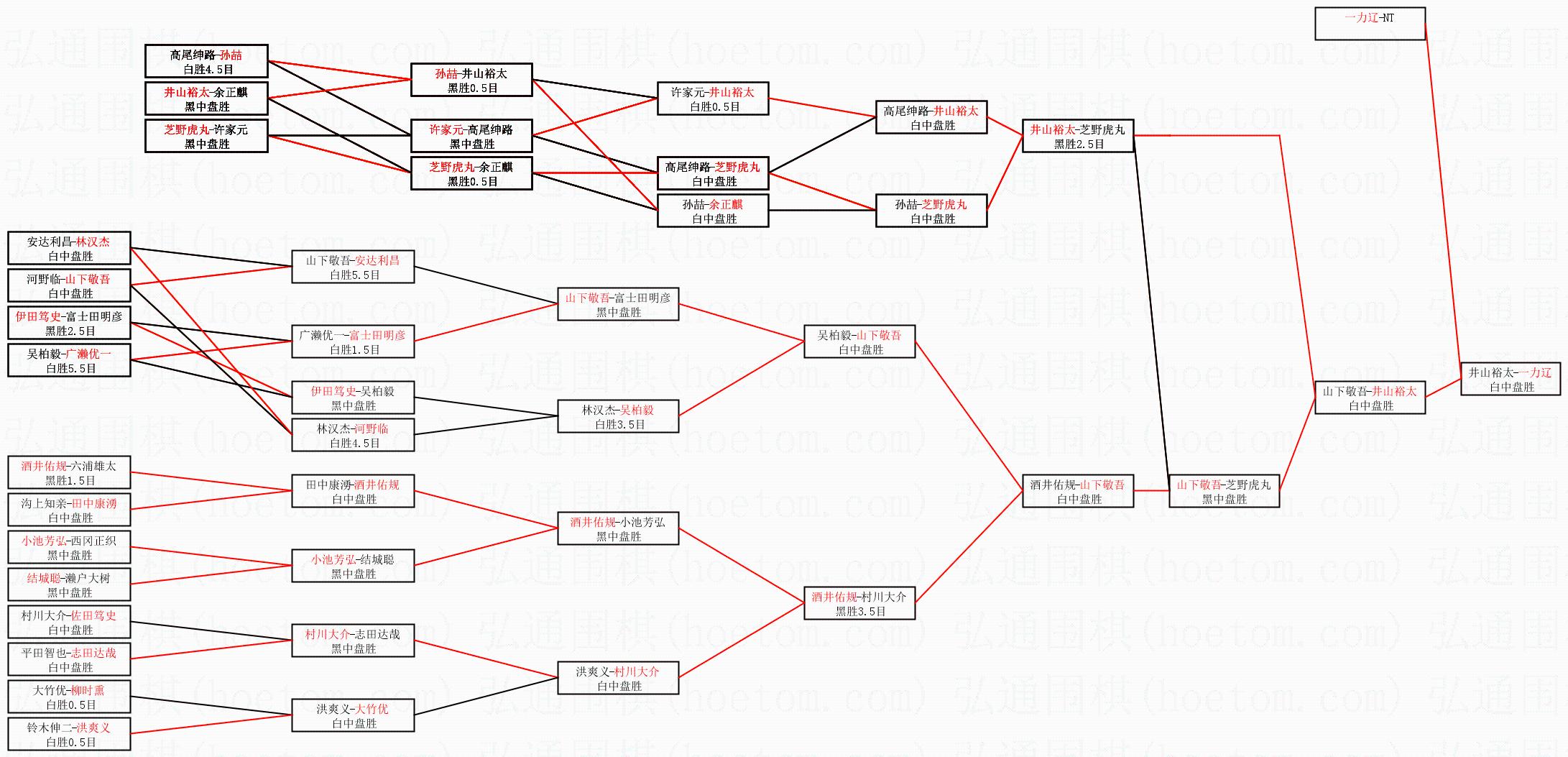 | 1.一力辽获得冠军,井山裕太获得亚军。决赛比分:一力辽4:3井山裕太。棋局: | ||