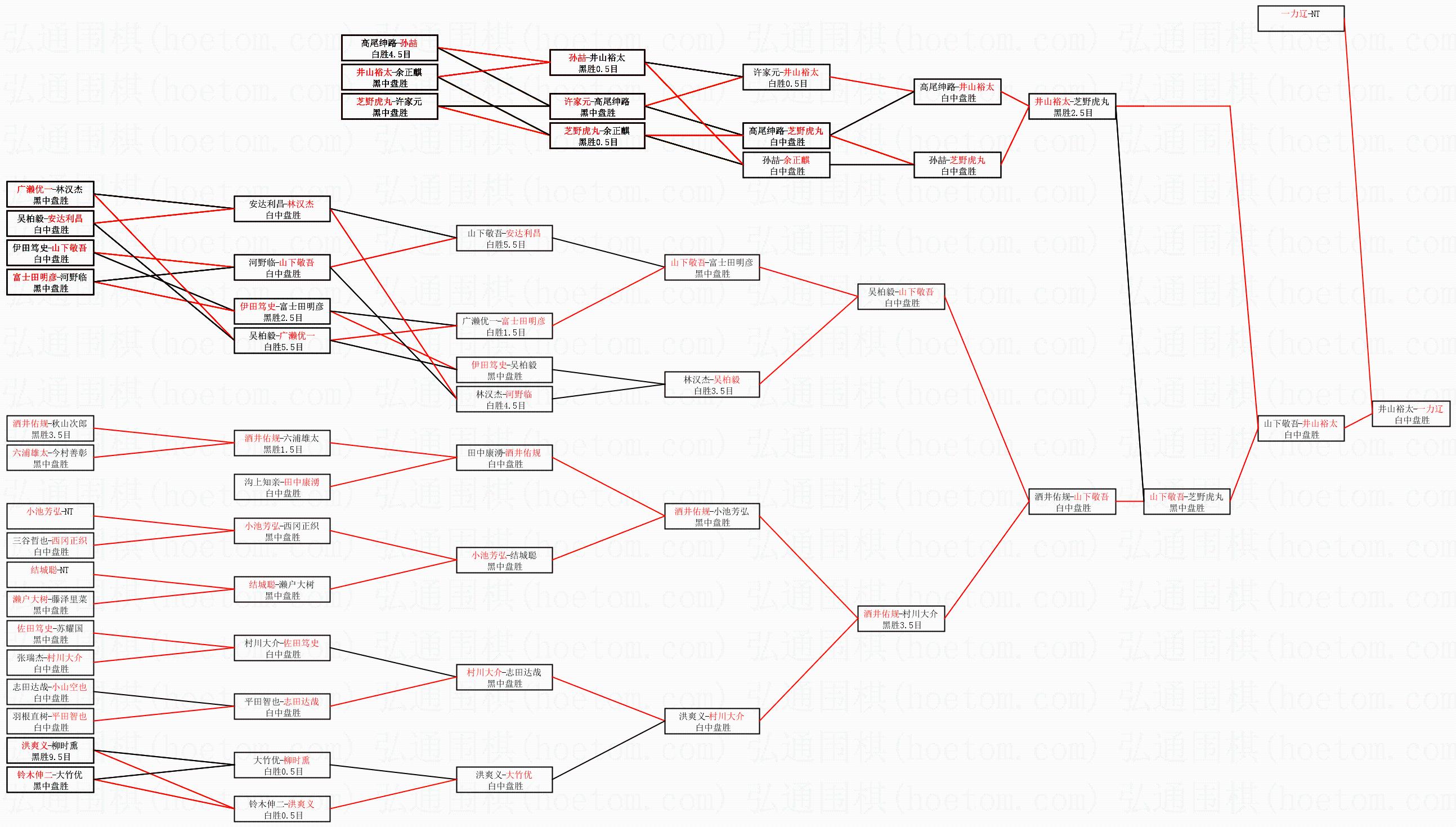 3.下半区半决赛井山裕太获胜,比分:井山裕太1:0山下敬吾。棋局: