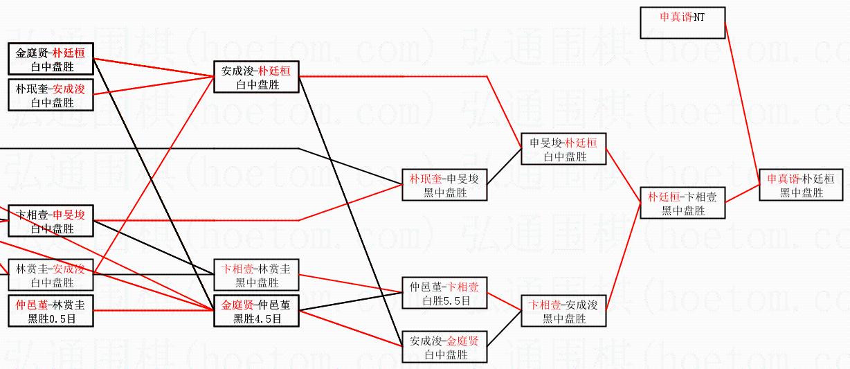 1.申真谞获得冠军,朴廷桓获得亚军。决赛比分:申真谞3:0朴廷桓。棋局:
