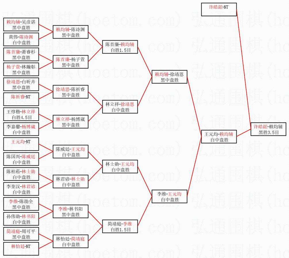 | 1.许皓鋐获得冠军,赖均辅获得亚军。决赛比分:许皓鋐3:1赖均辅。棋局: | ||